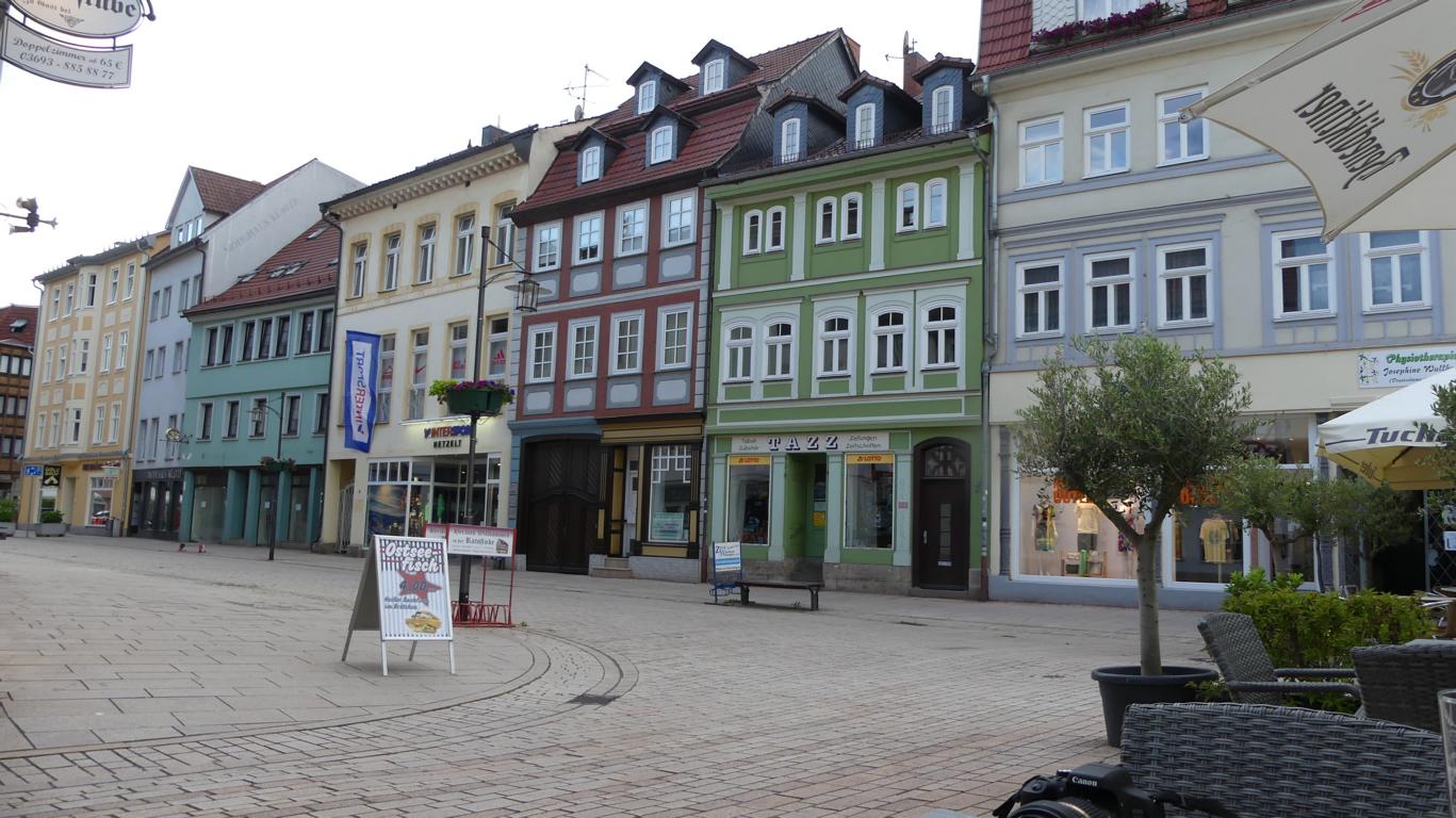 Im Weiteren stellt es sich heraus, dass der Werratalradweg stetig bergauf und bergab führt. Das Hotel in Meiningen, dem Ziel unserer ersten Etappe war einfach aber sauber und der Wirt sehr zuvorkommend. Eine Fototour durch den Ort beschloss diesen Tag.